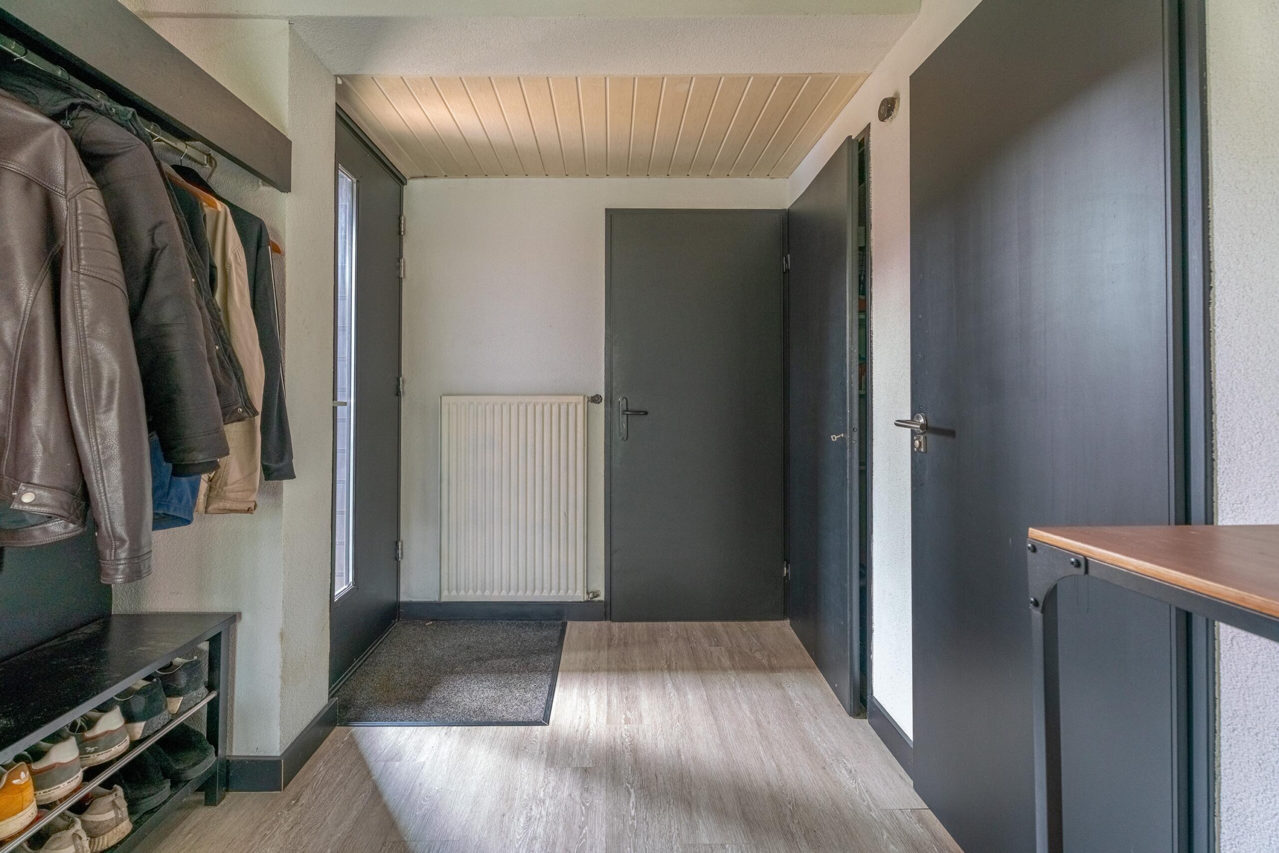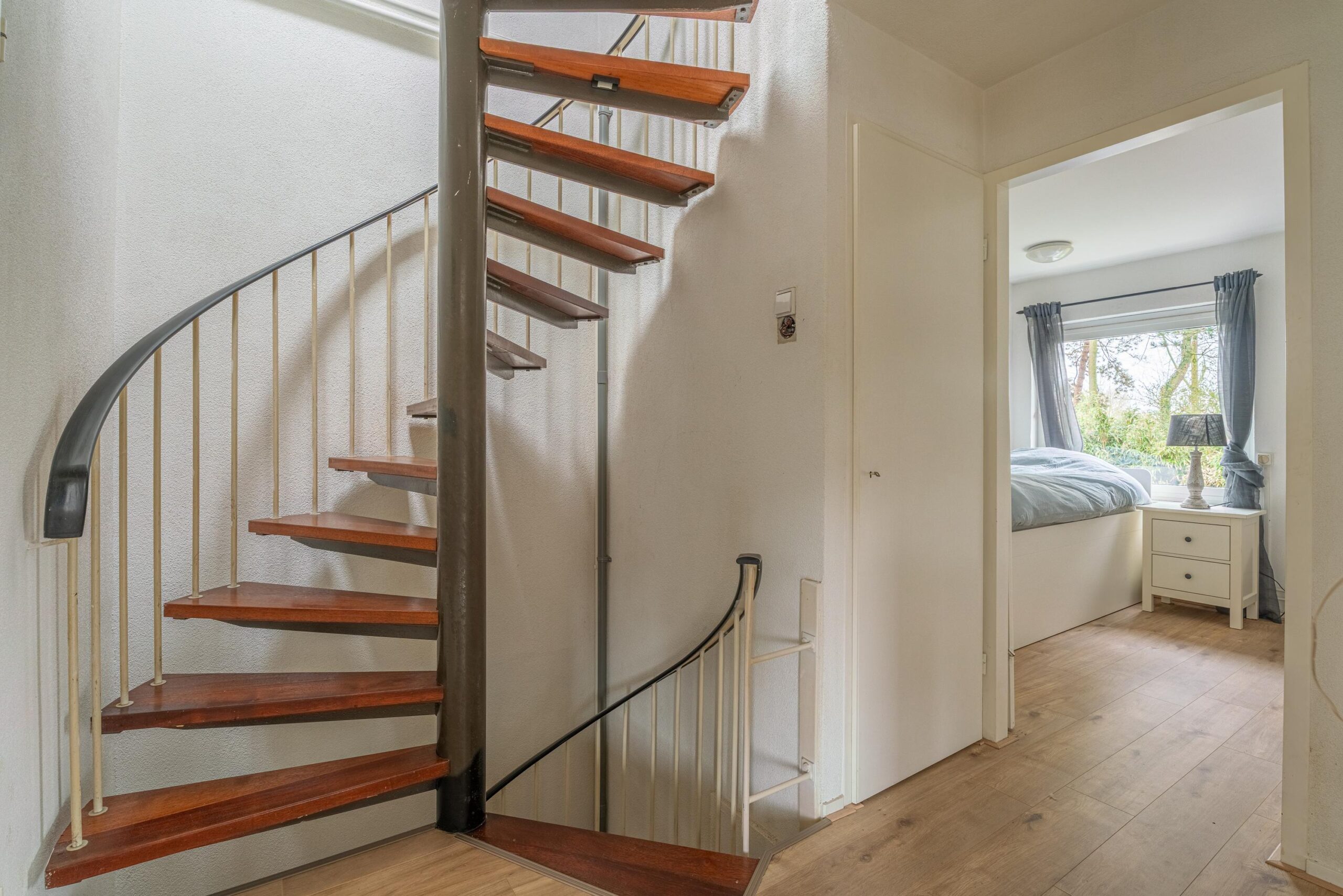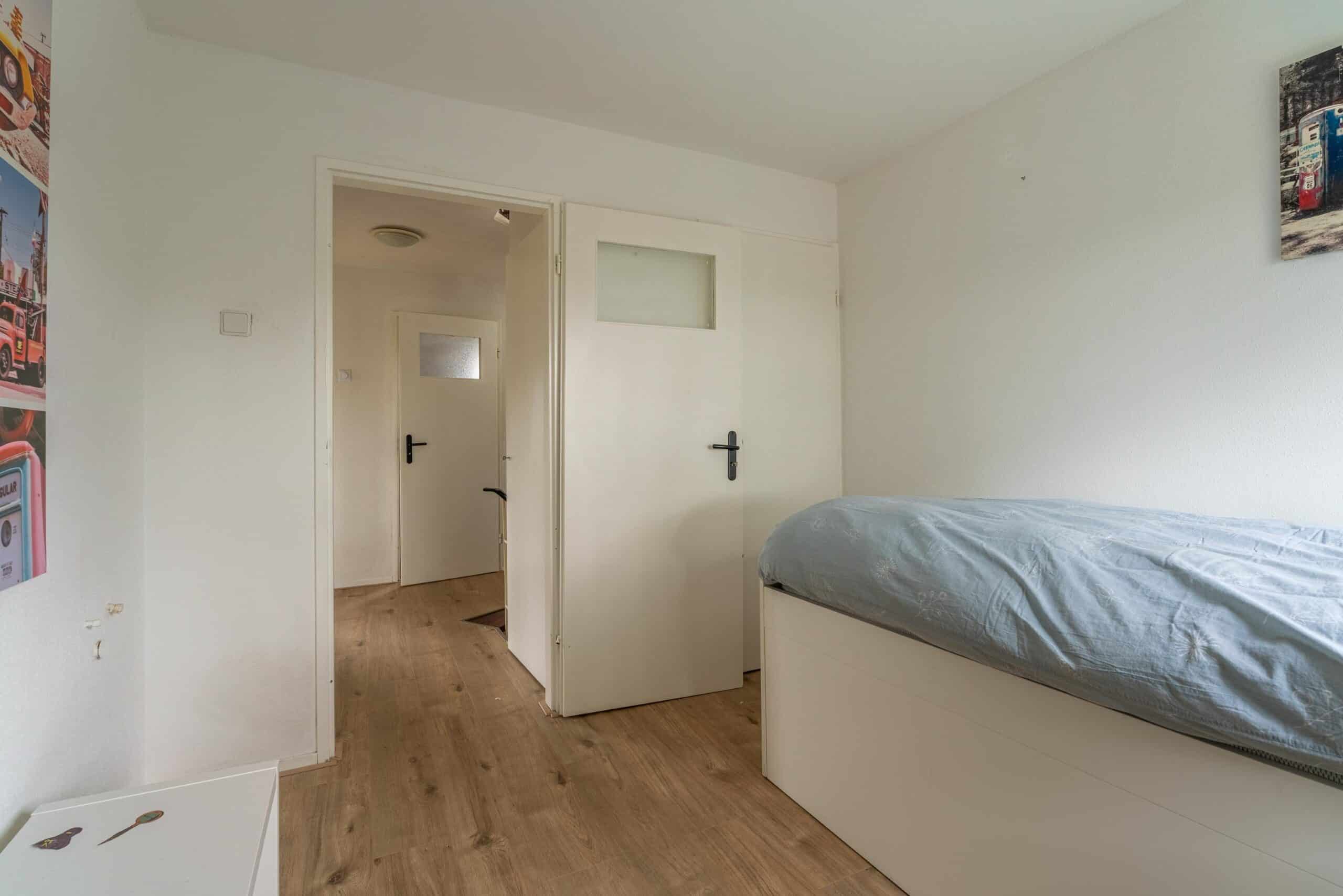 Overloop met vaste kast en toegang tot drie ruime slaapkamers. Alle slaapkamers zijn voorzien van rolluiken, wat zorgt voor extra comfort.