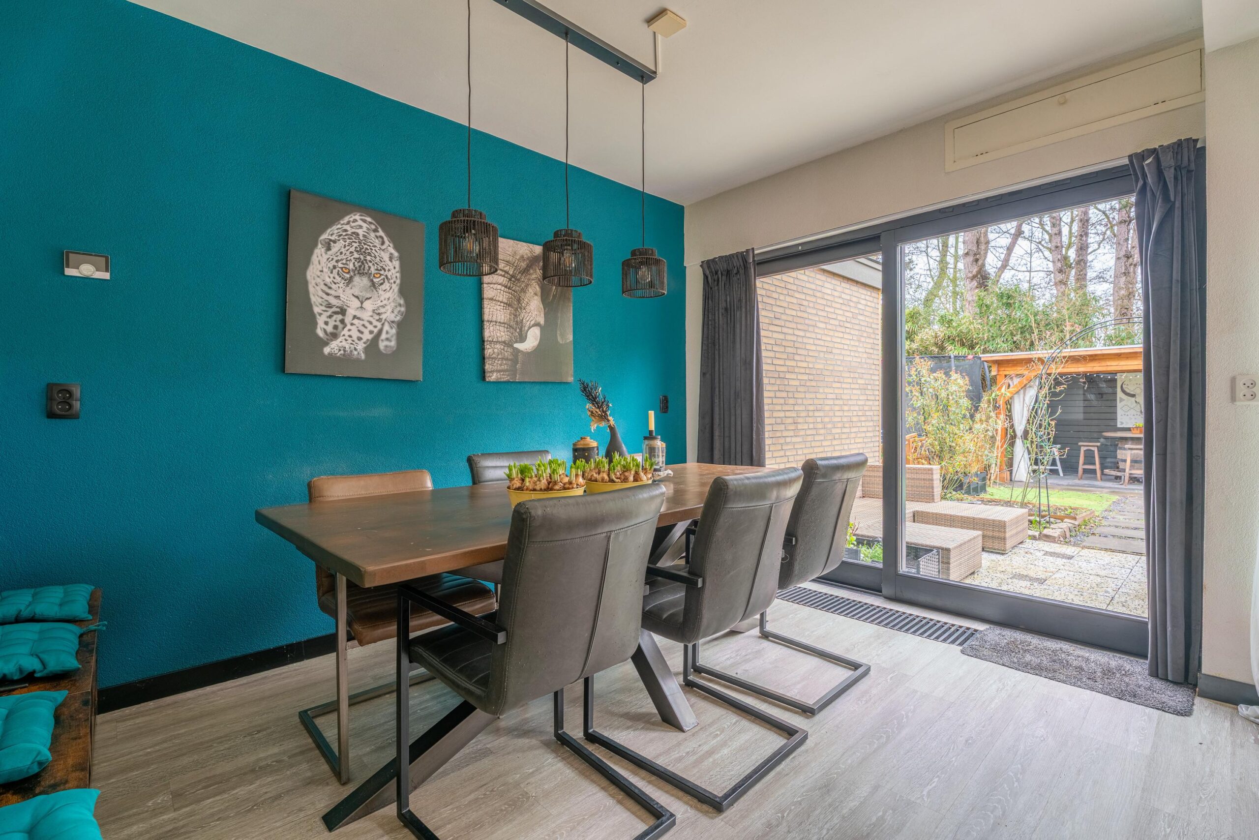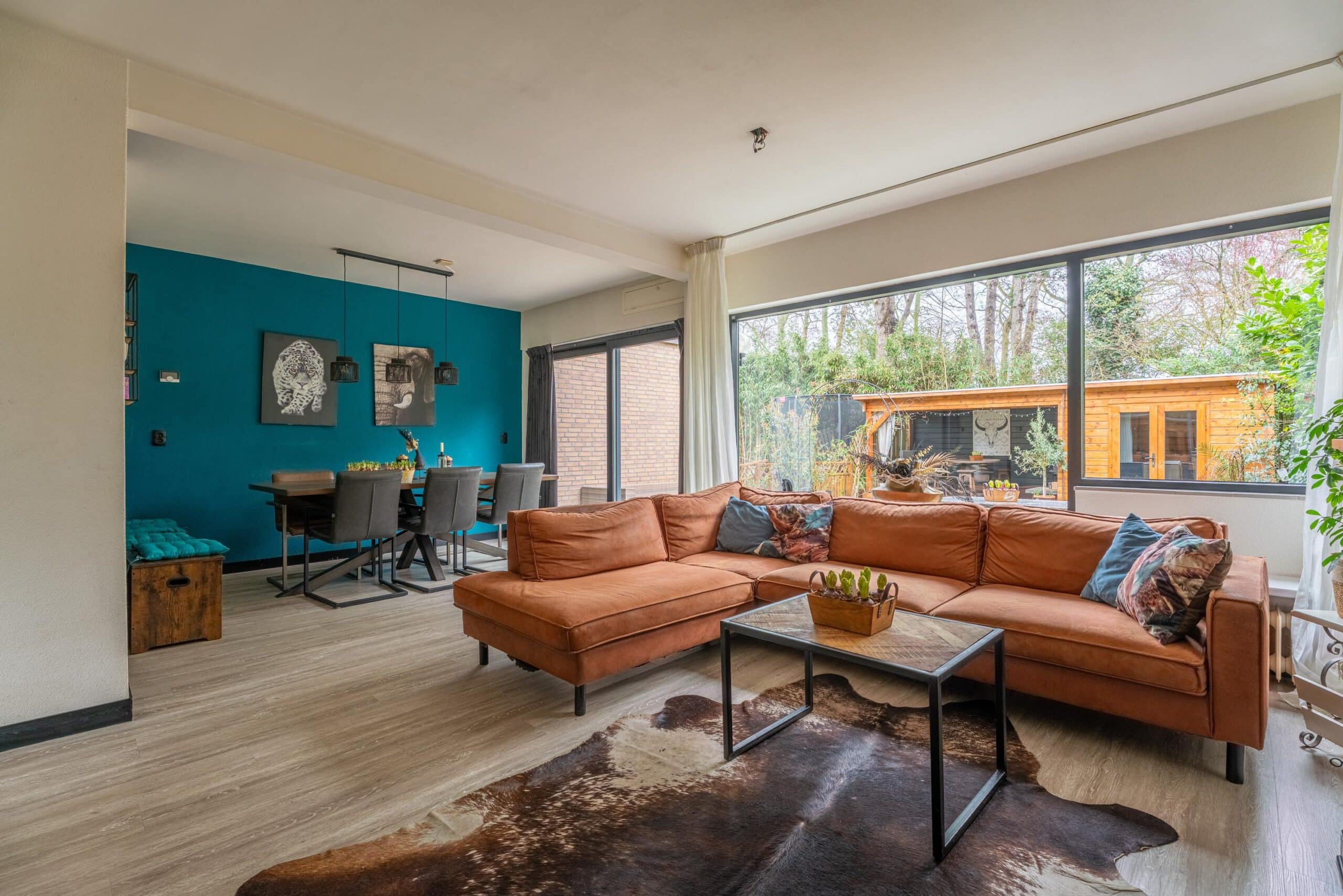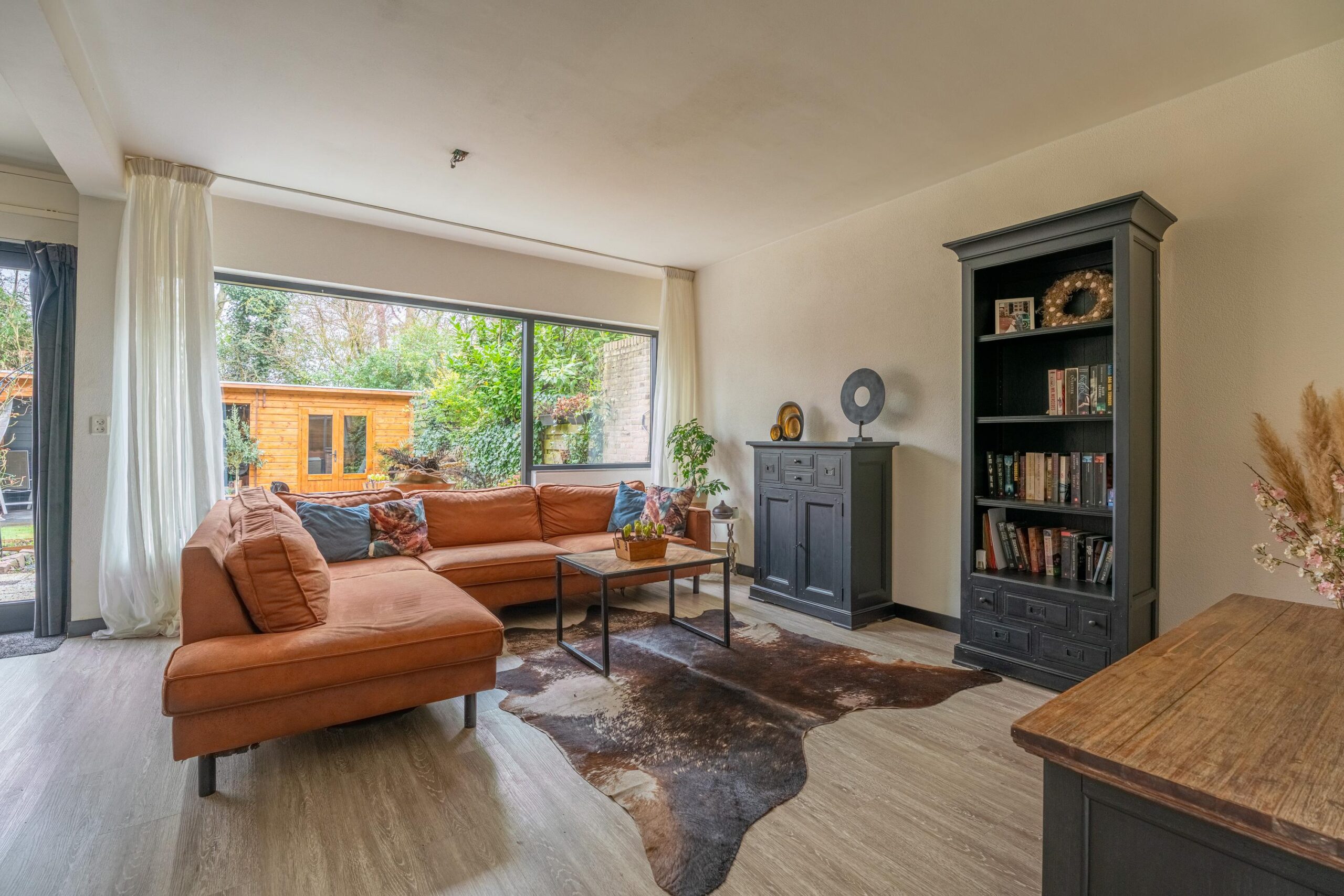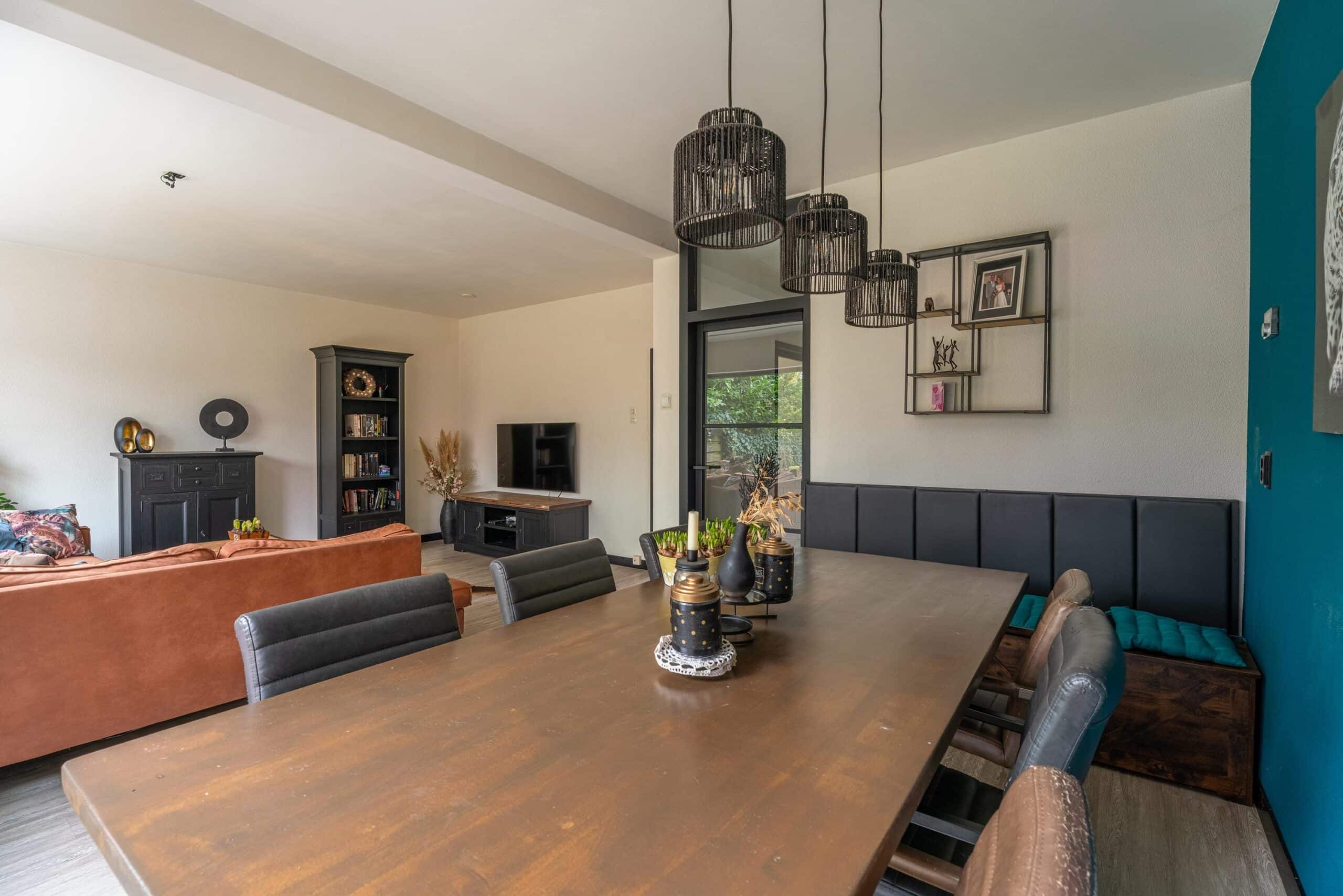 De woonkamer is tuingericht en heeft een fijne lichtinval dankzij de grote schuifpui. De ruimte biedt voldoende plek voor een royale zithoek en eethoek.