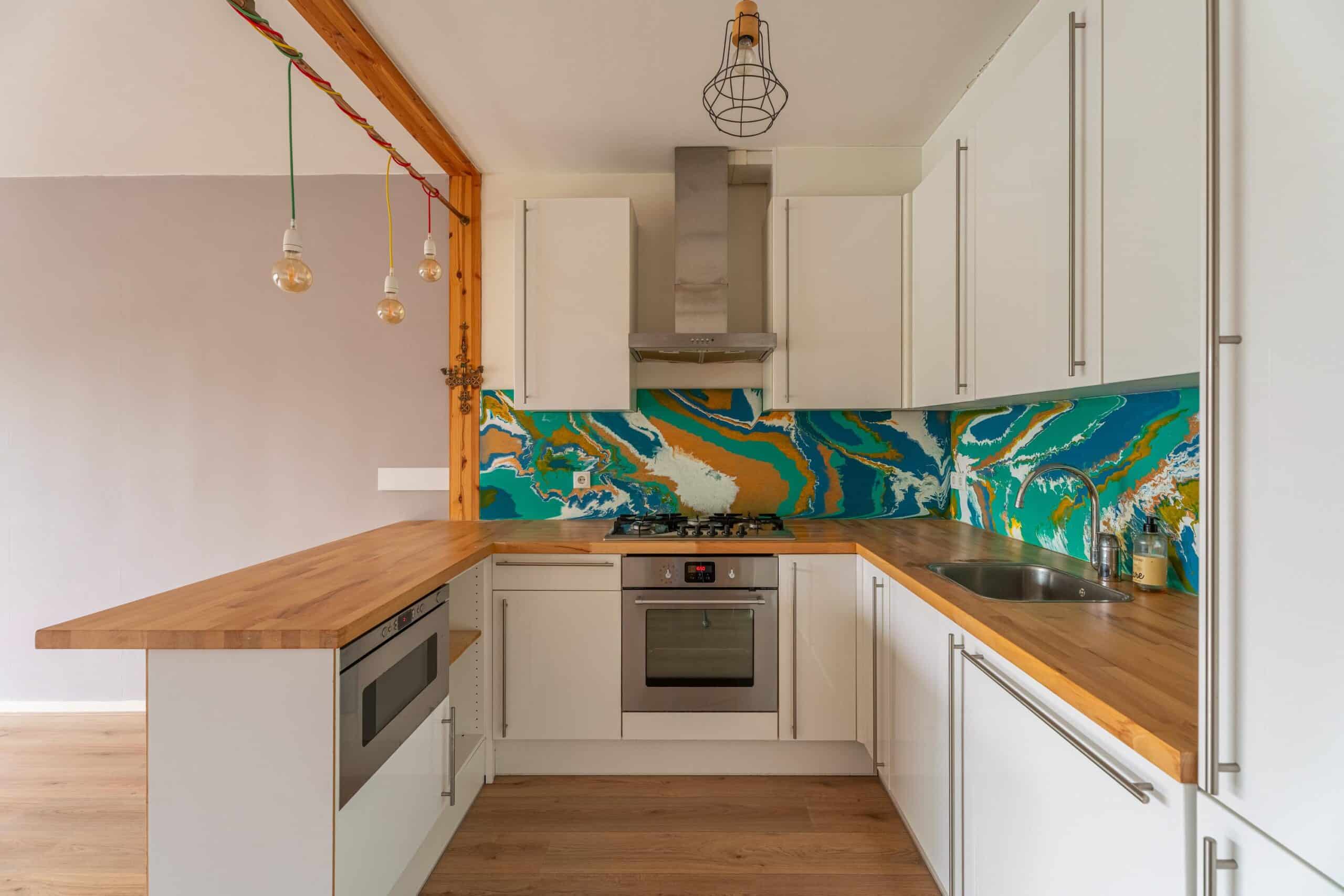 Leuk starters appartement met balkon en nette keuken in een groene omgeving.