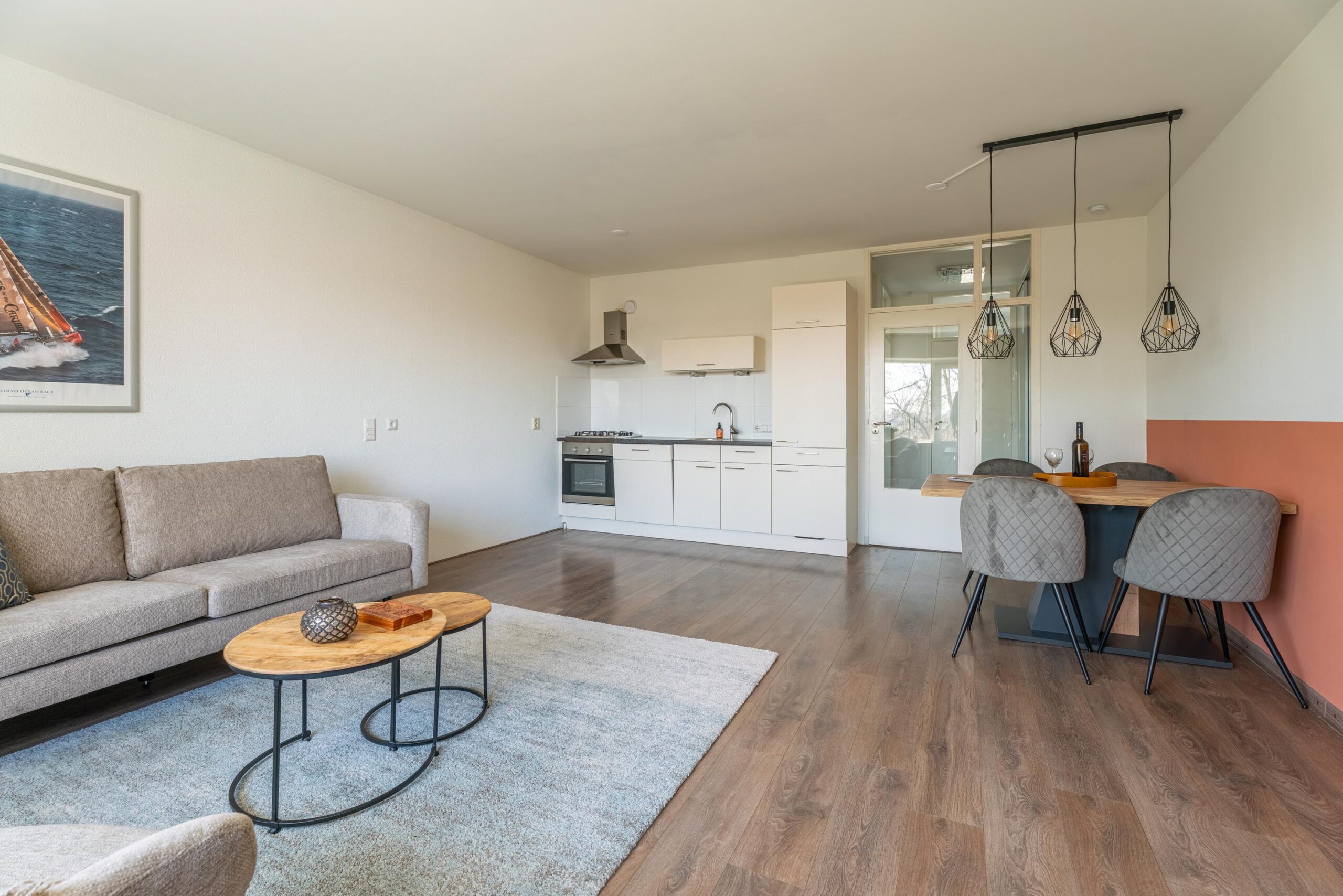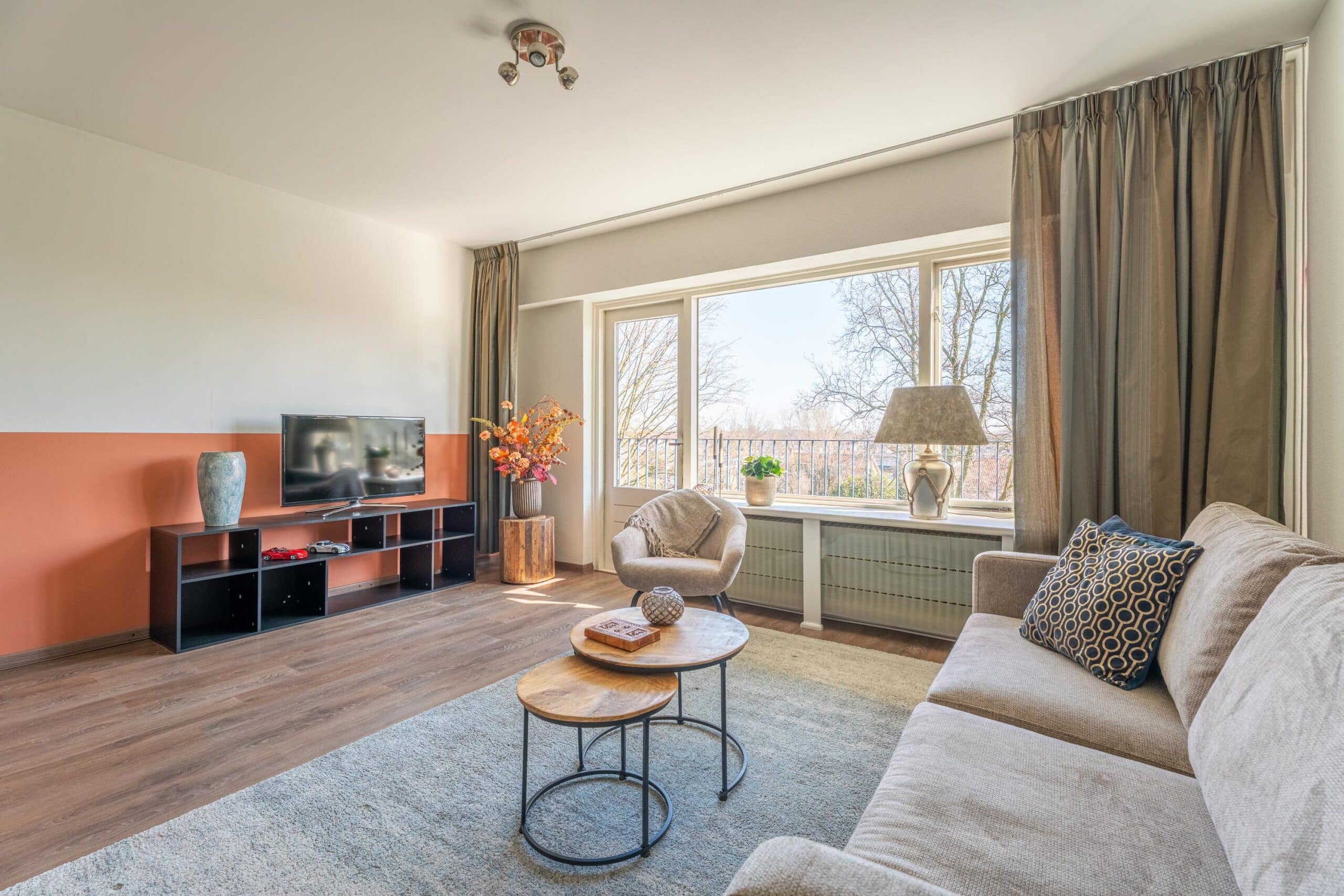 Via de woonkamer heb je toegang tot het zonnige balkon op het oosten, met uitzicht op water en groen — een rustige en prettige plek om te ontspannen.