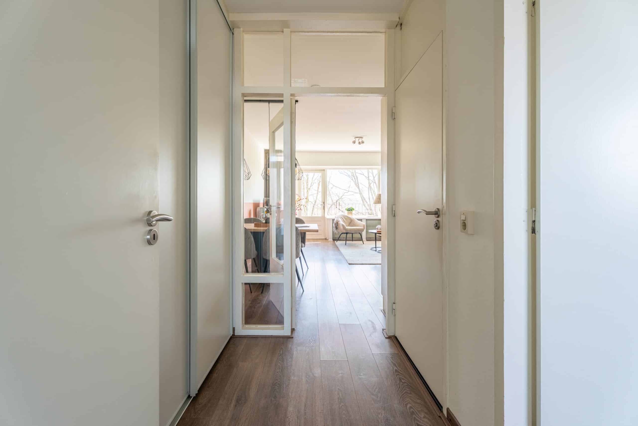 Bij binnenkomst kom je in de entree, die toegang geeft tot de hal. Vanuit de hal, voorzien van een ingebouwde kast, bereik je alle ruimtes: de woonkamer, slaapkamer en het toilet met fonteintje.