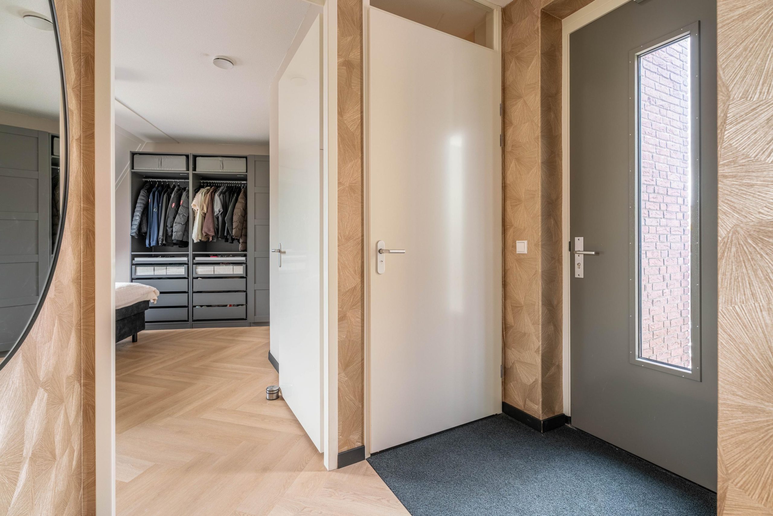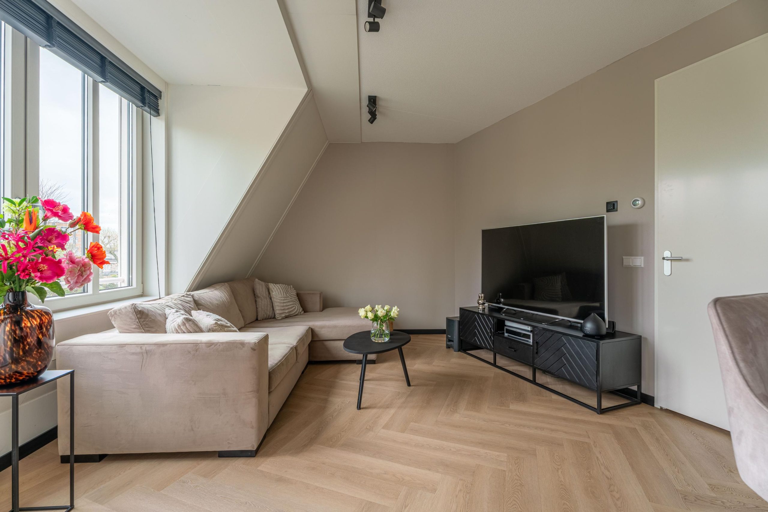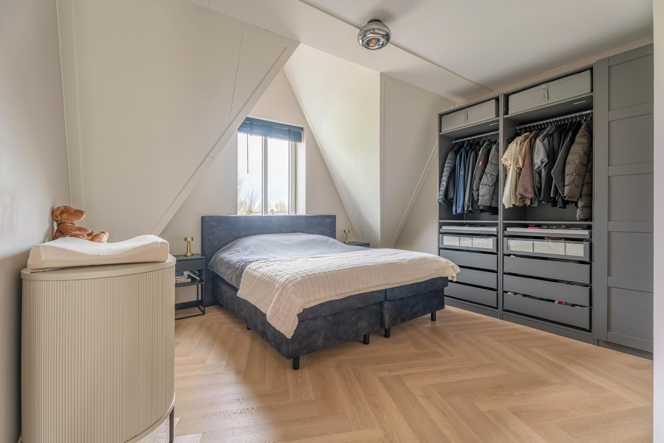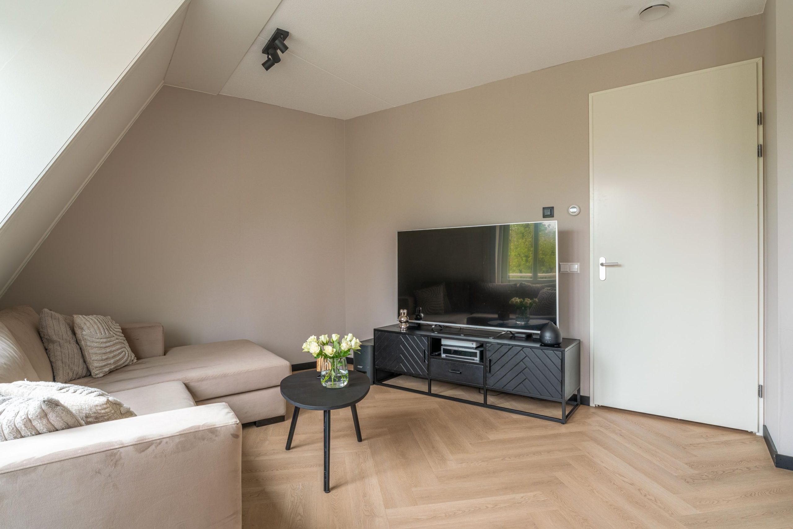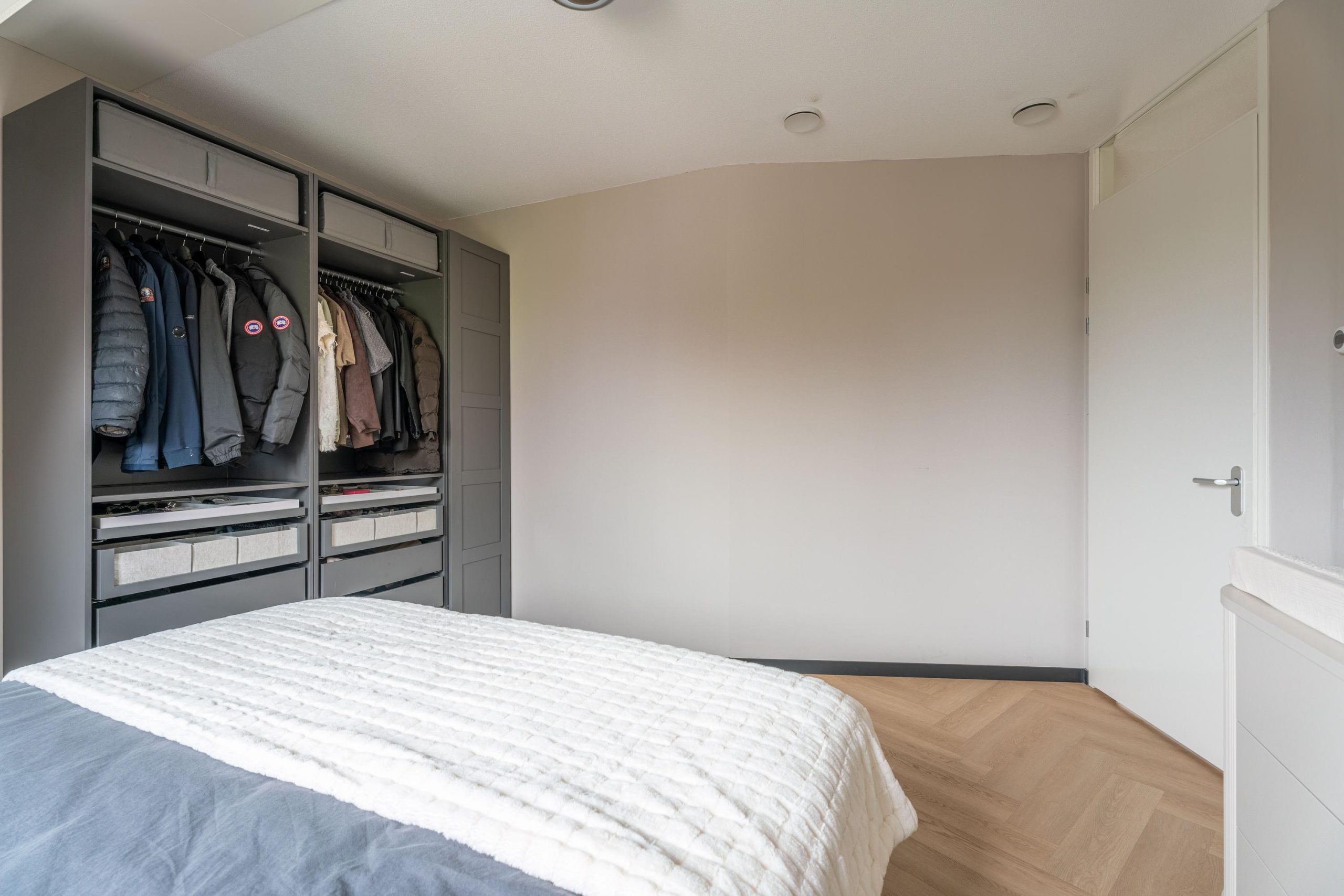 Entree, hal met toegang tot alle vertrekken. De lichte woonkamer heeft een speelse indeling door de schuine kap en dakkapellen en staat in open verbinding met de moderne keuken. De keuken is voorzien van diverse inbouwapparatuur, waaronder een kookplaat, afzuigkap, koel-/vriescombinatie, combioven en vaatwasser. Via de keuken is de technische ruimte bereikbaar.