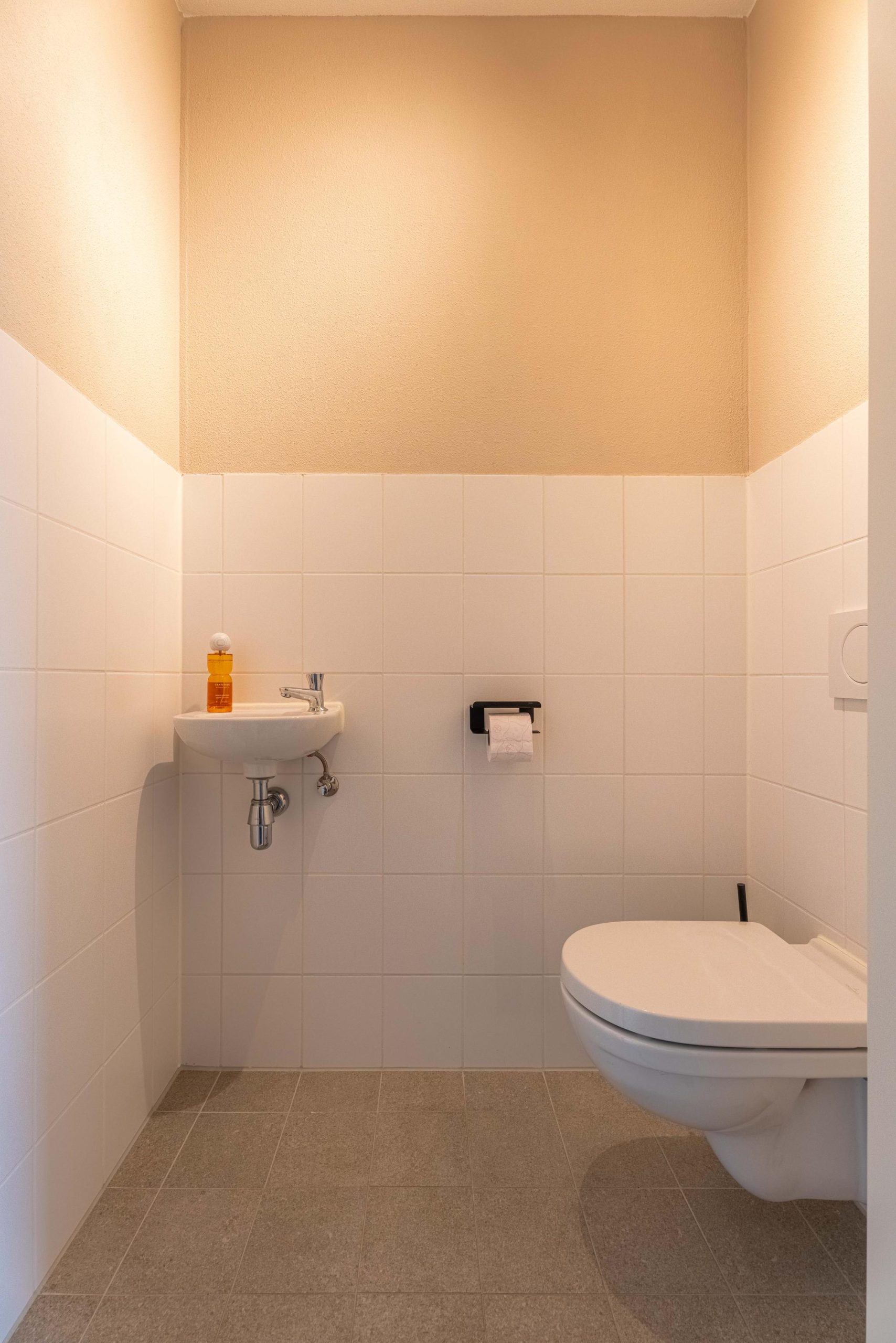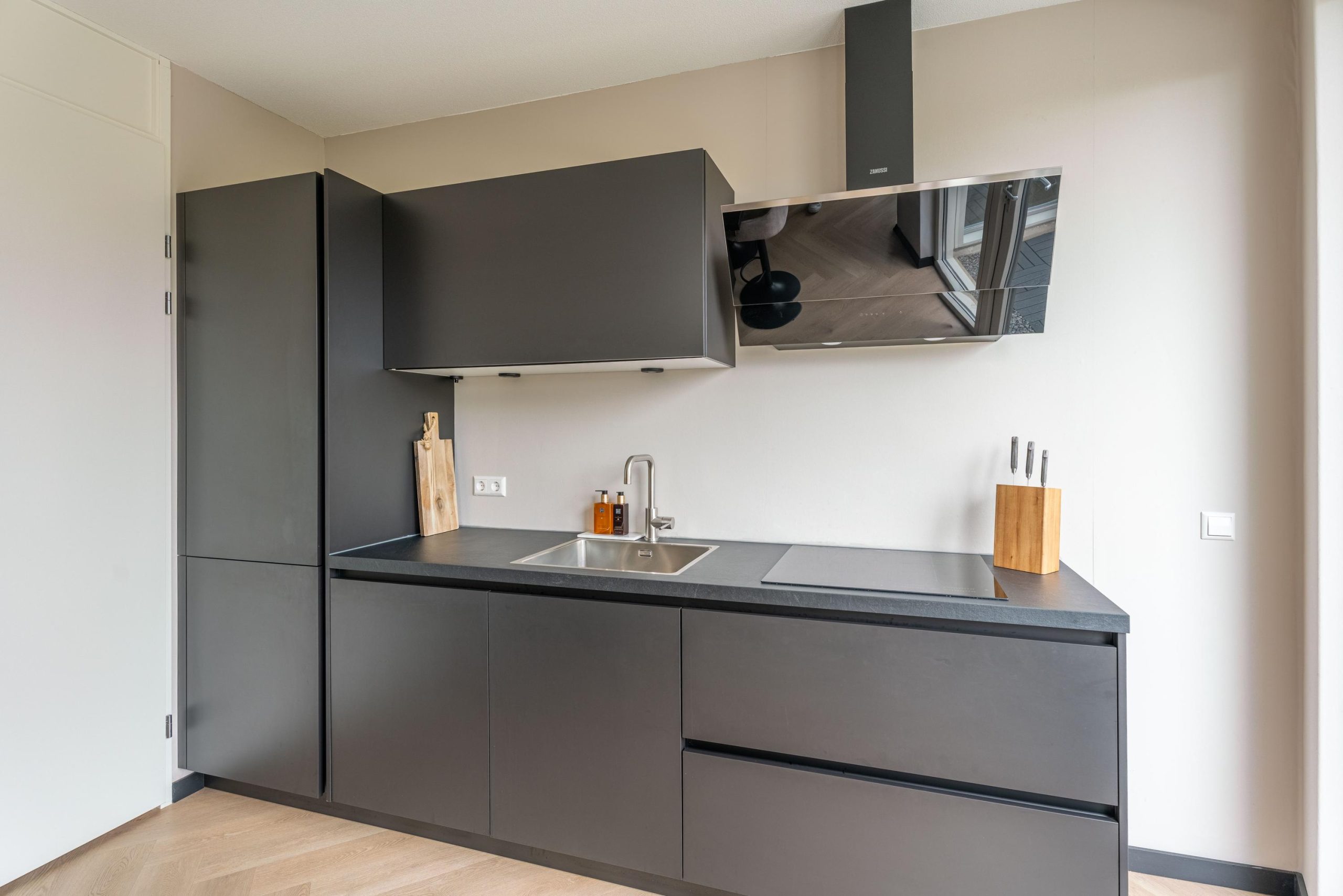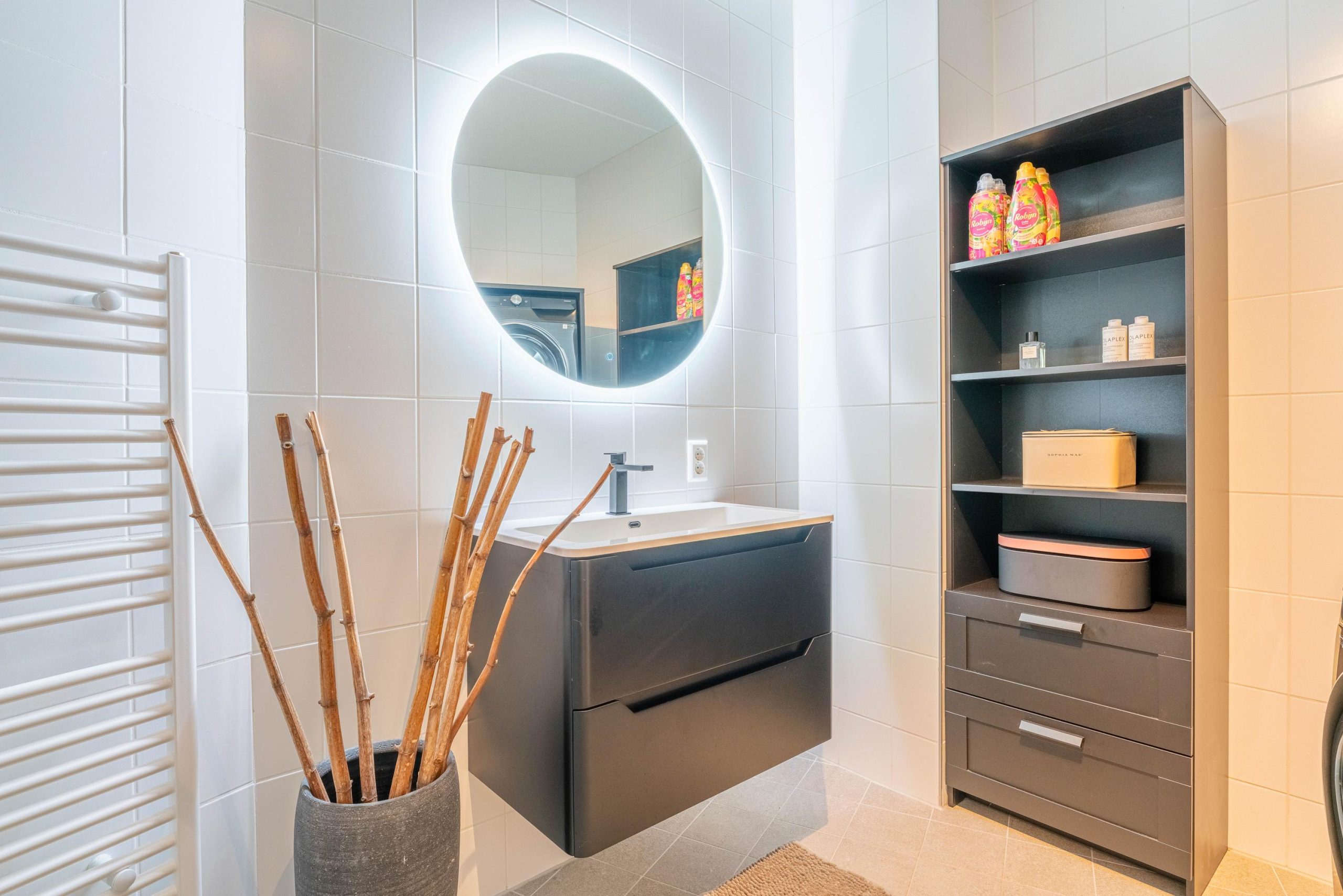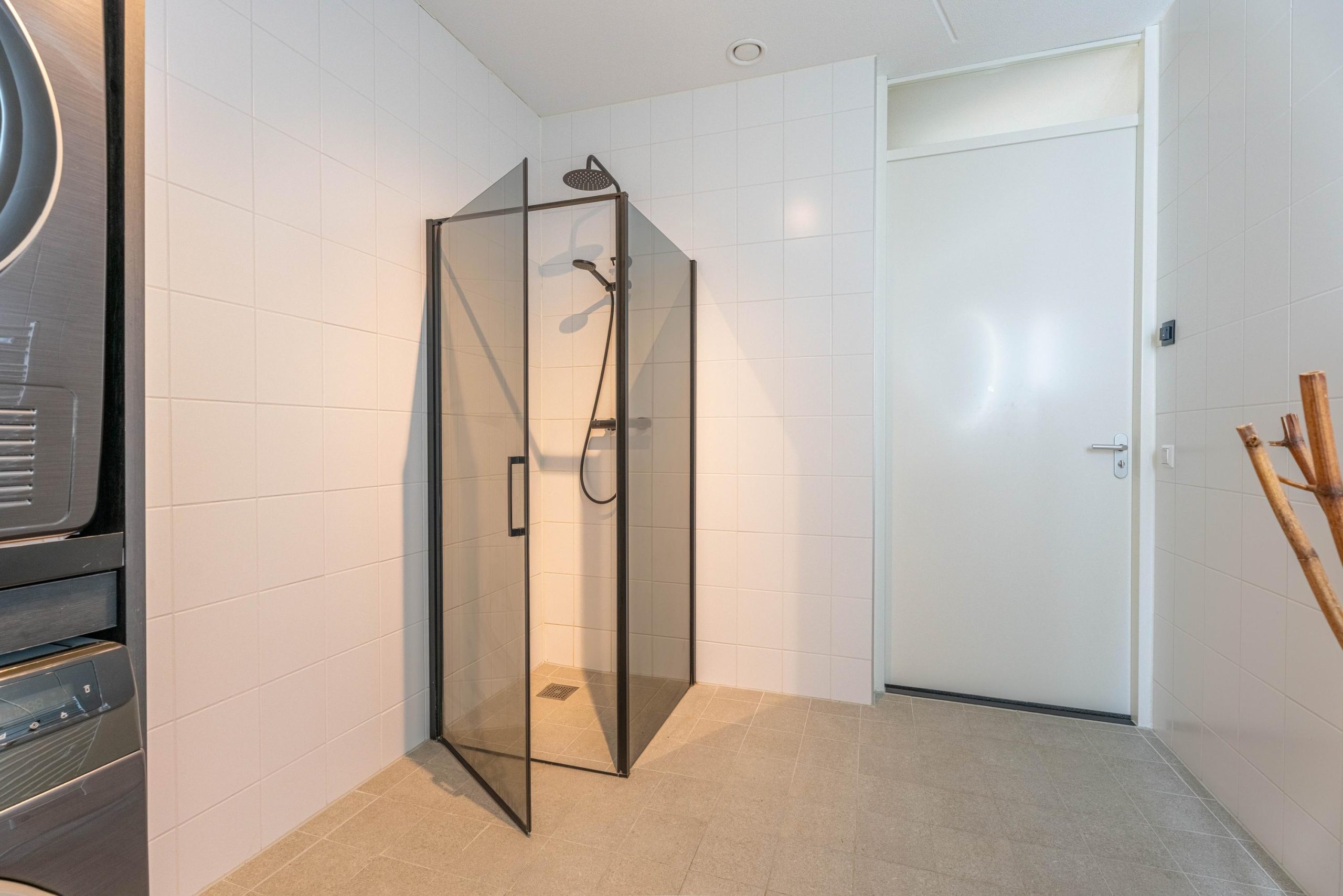 De slaapkamer is ruim opgezet en beschikt over praktische kastruimte. De badkamer is modern uitgevoerd en voorzien van een inloopdouche, wastafelmeubel en aansluitingen voor wasapparatuur.