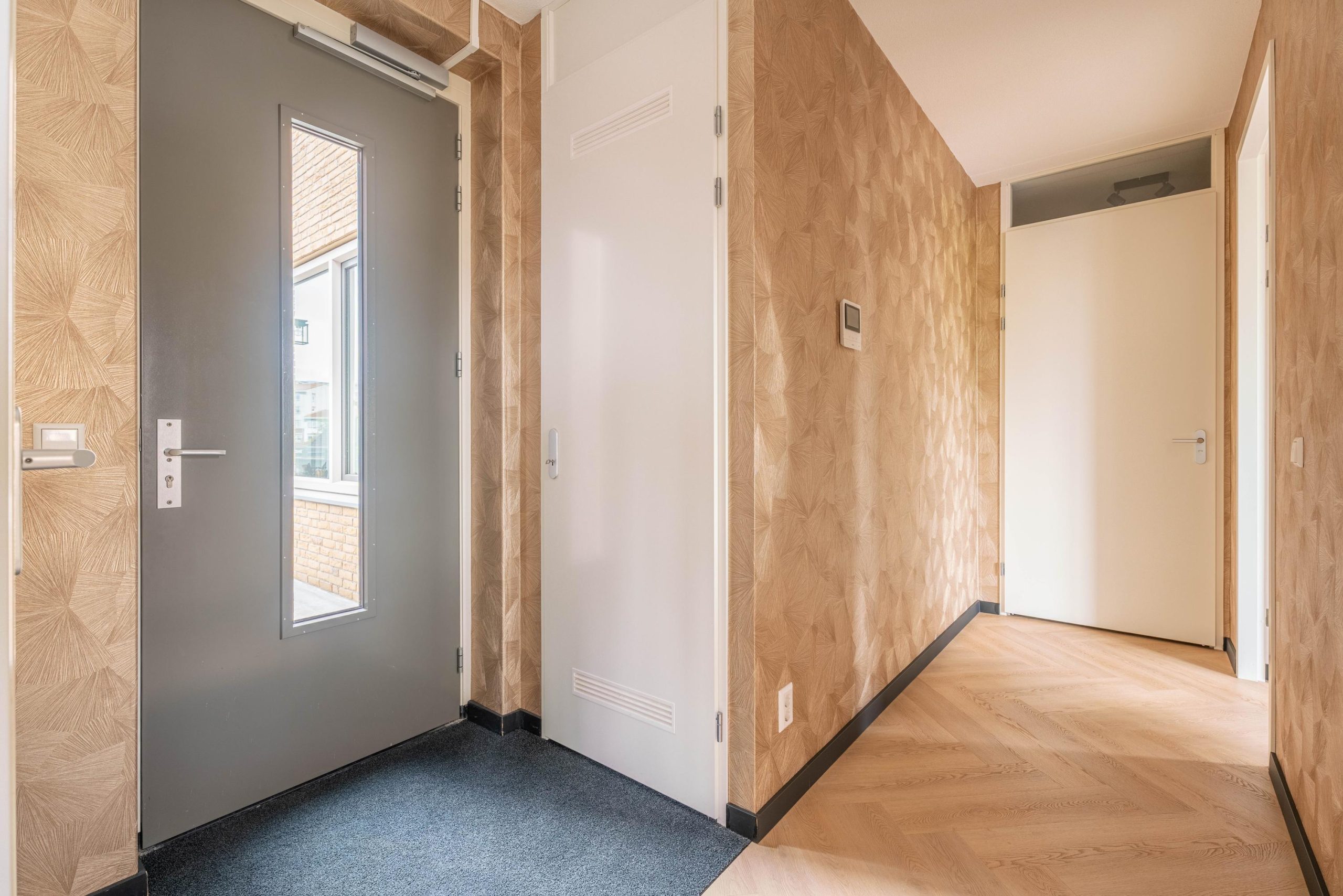 Centrale entree met bellentableau, brievenbussen, lift en trapopgang.