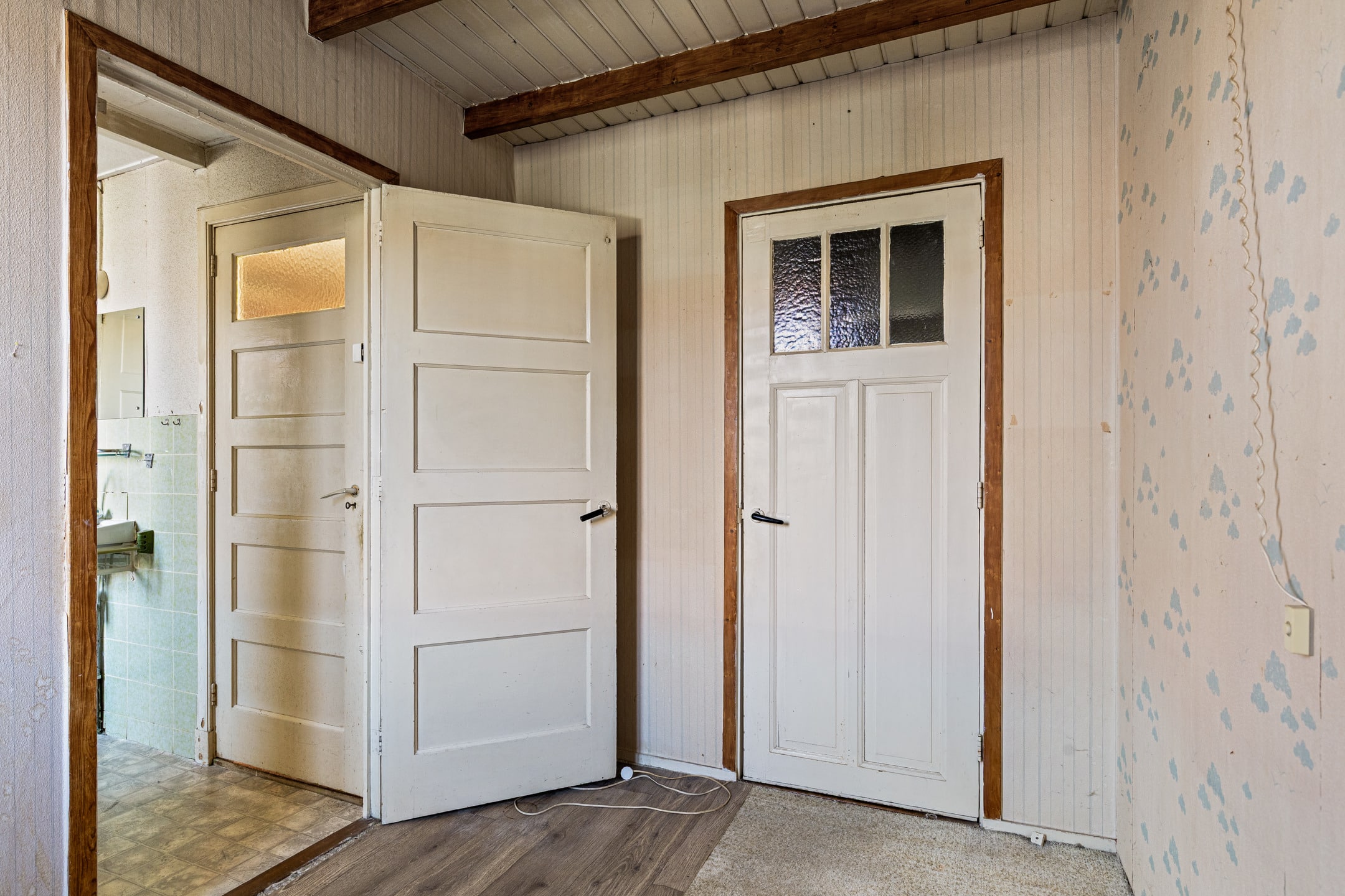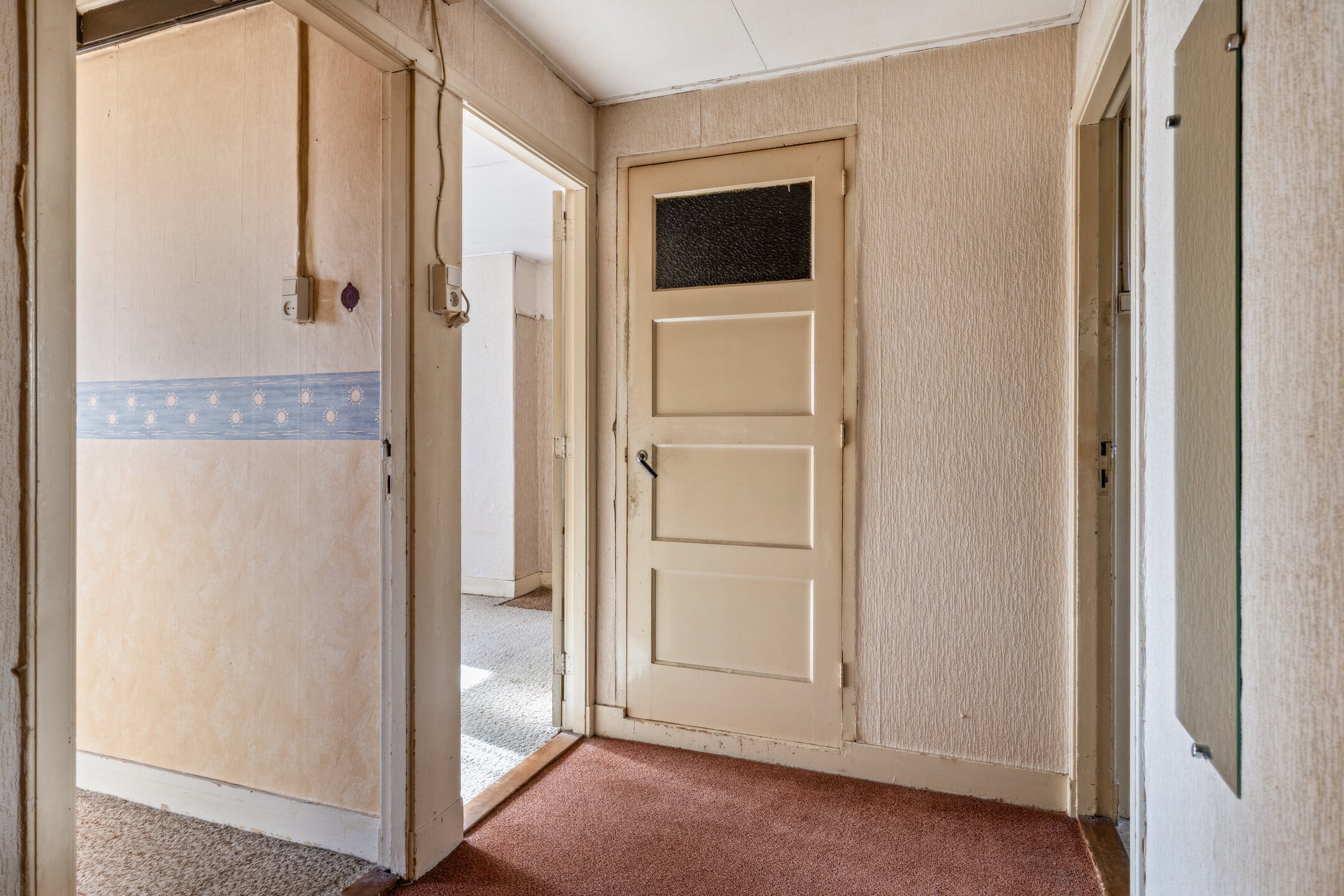 De overloop geeft toegang tot drie slaapkamers en de badkamer.