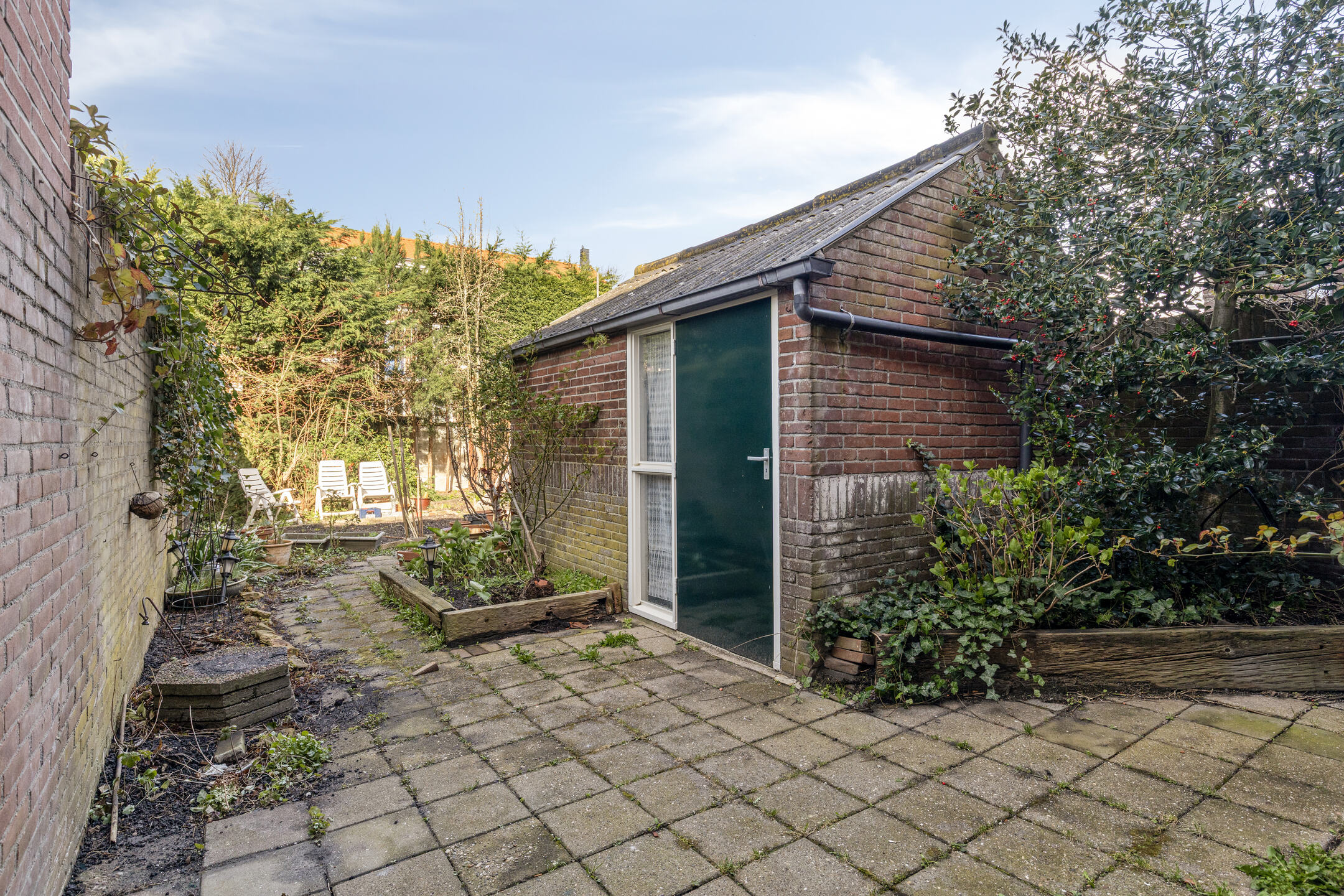 • Diepe achtertuin gelegen op het westen met berging