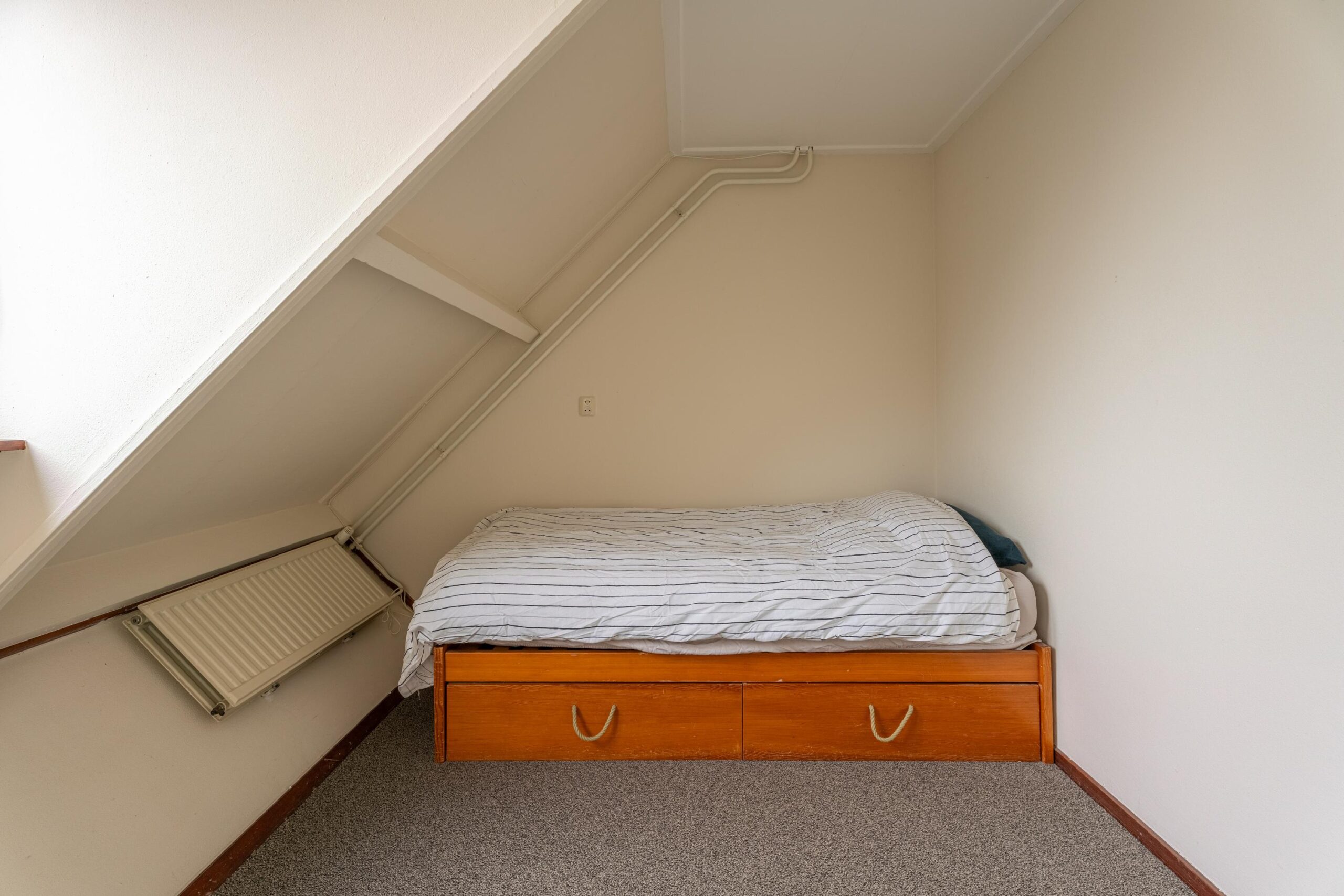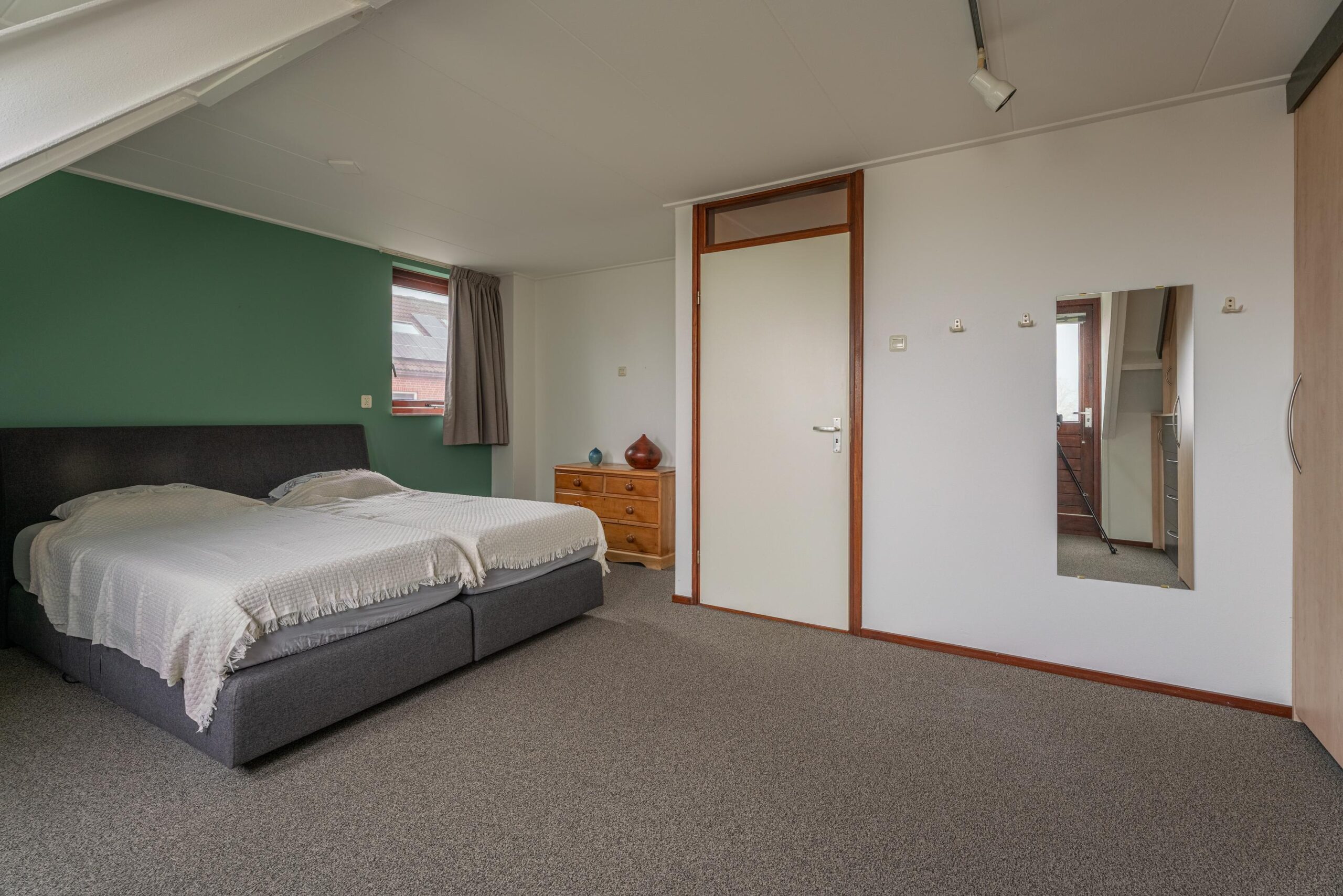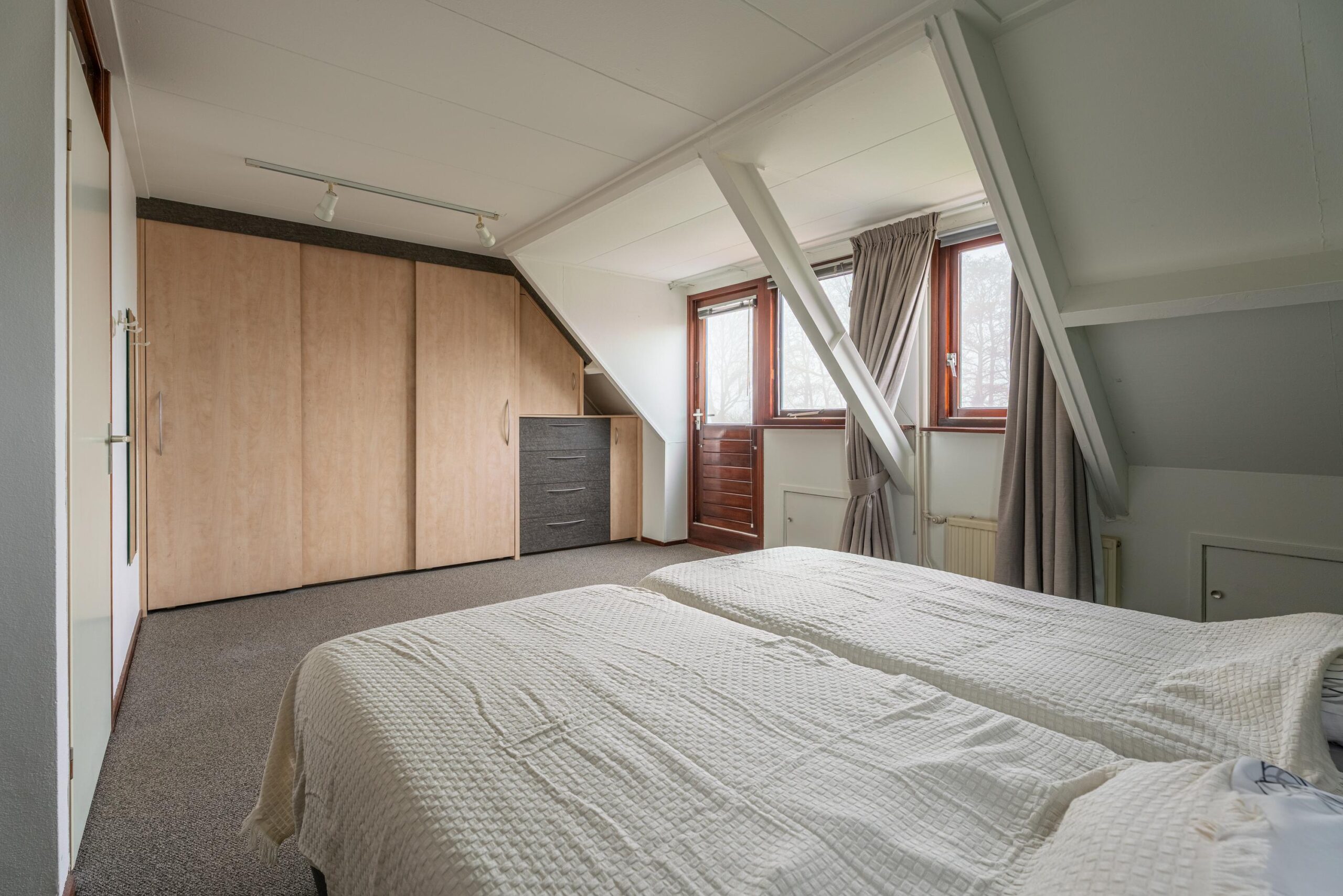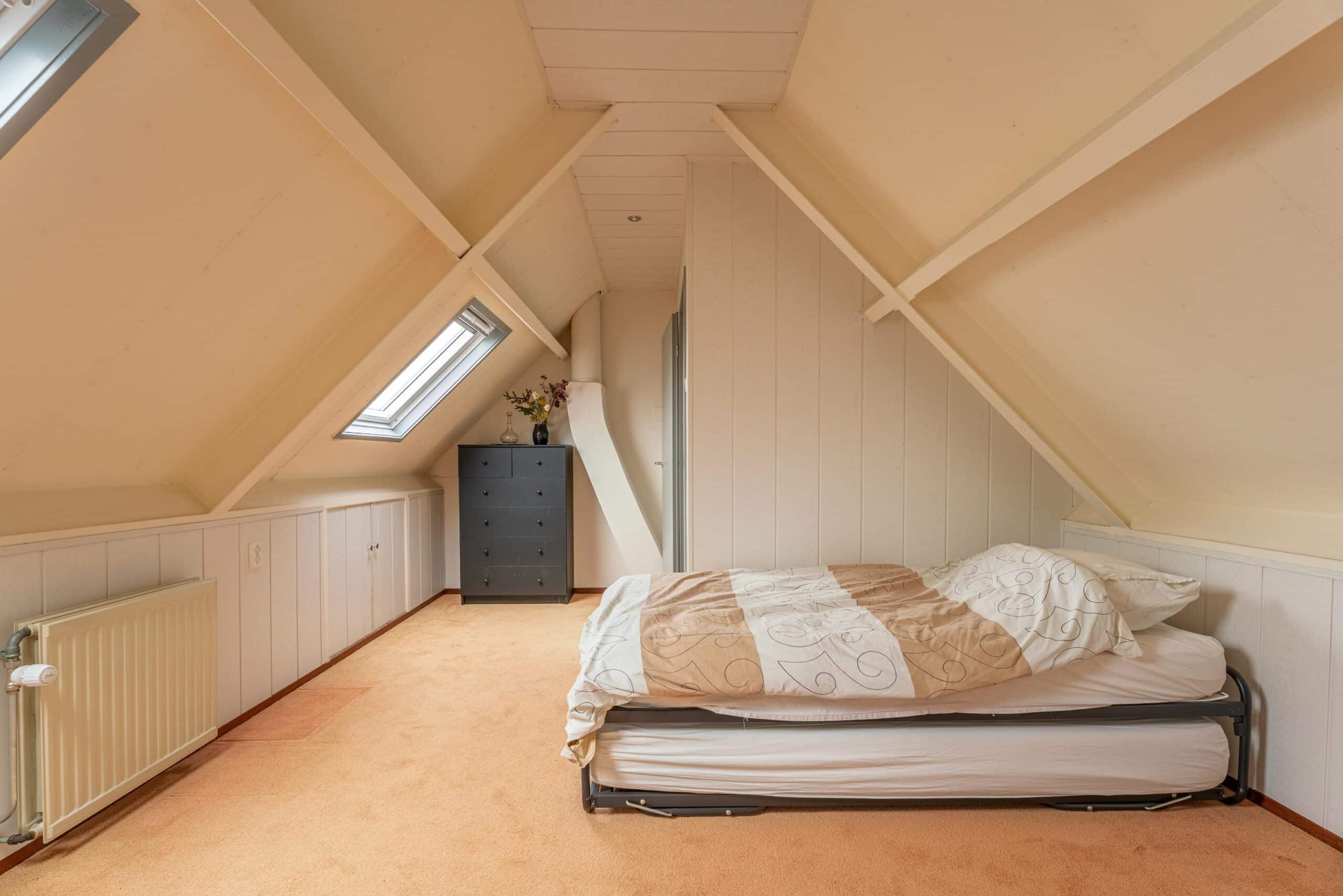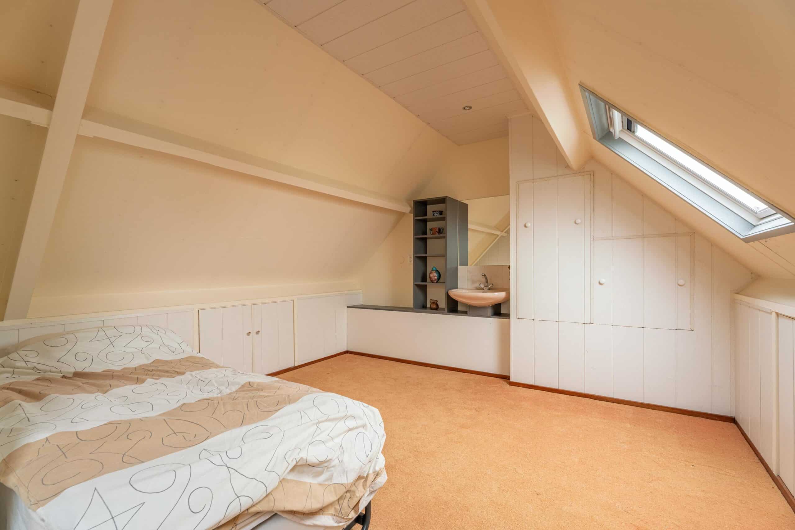 Via een vaste trap bereik je de ruime zolderverdieping. Hier bevindt zich een vierde slaapkamer met dakraam en een wastafel. Daarnaast is er extra bergruimte aanwezig achter de knieschotten.