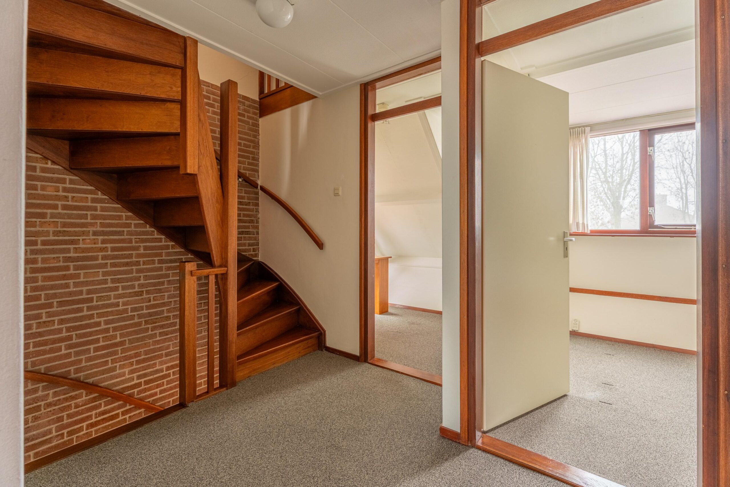 Overloop met toegang tot drie slaapkamers en de badkamer. De slaapkamers zijn van goed formaat en één van de kamers beschikt over een balkon en een vaste kast.