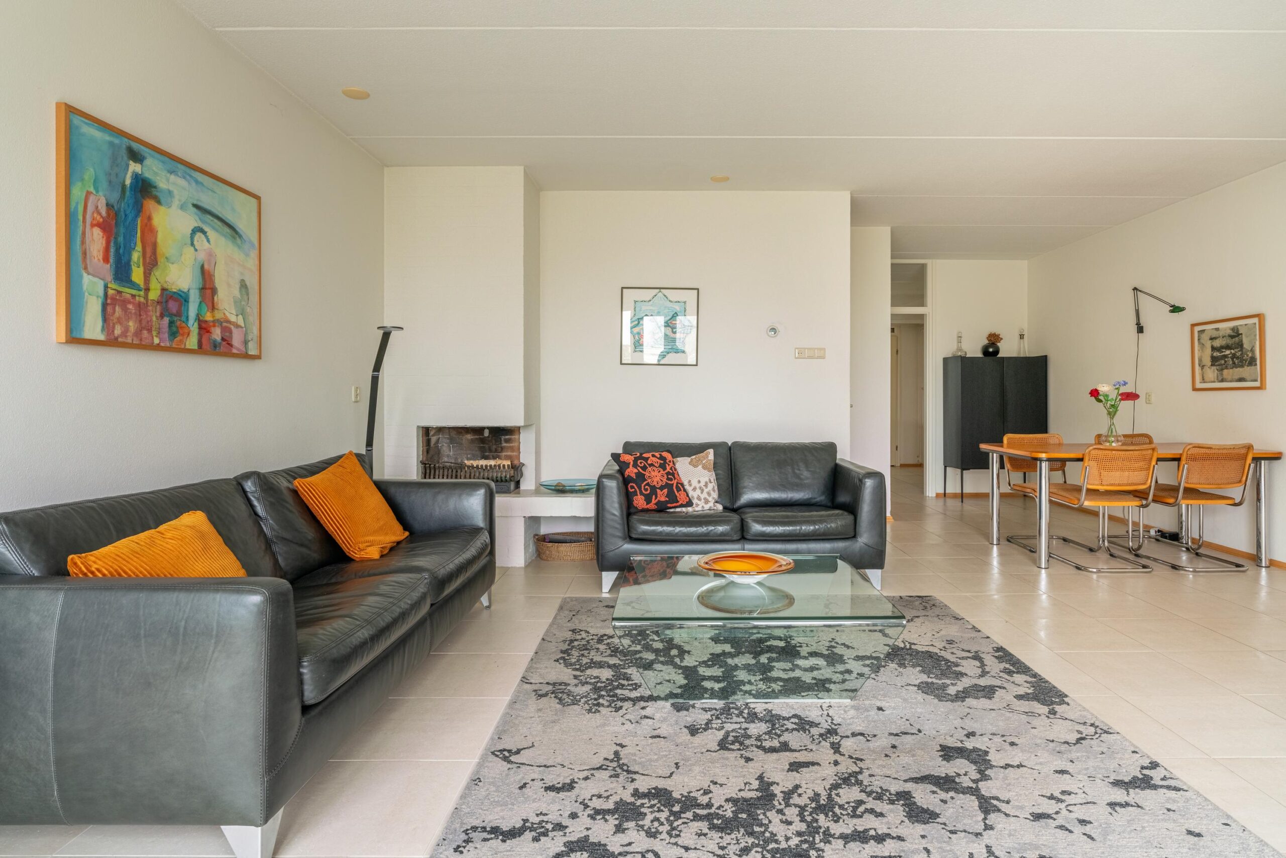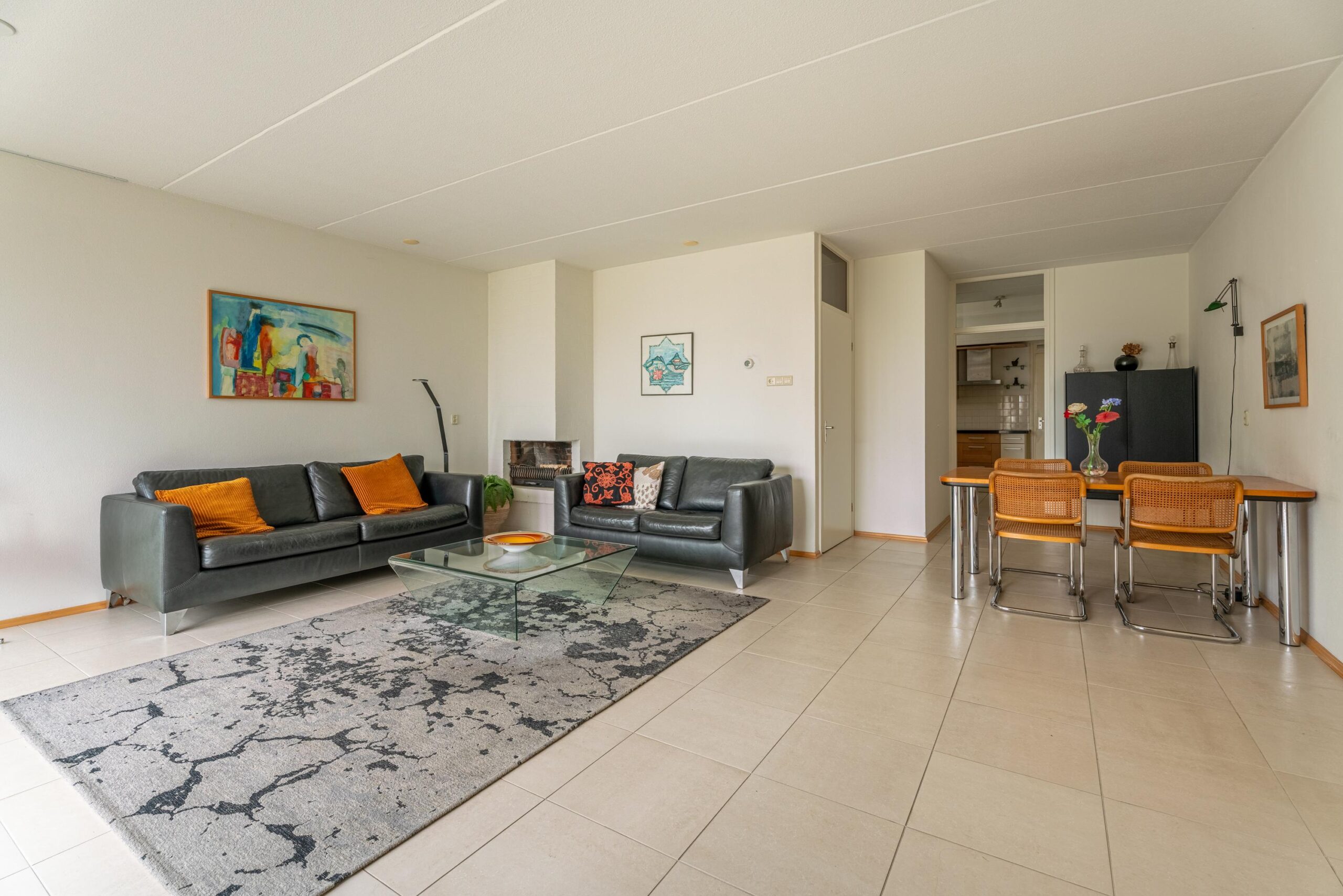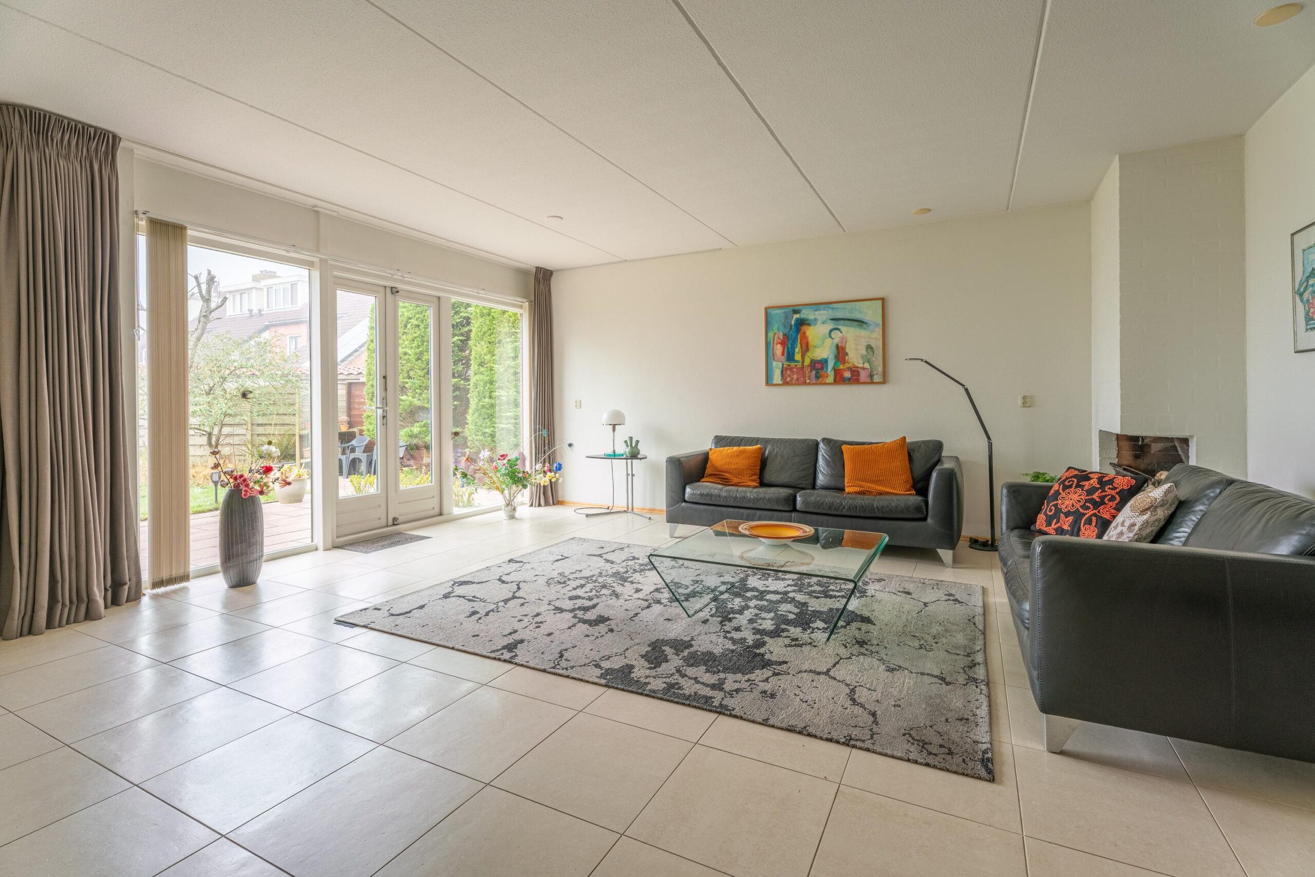 De woonkamer is ruim opgezet en dankzij de grote raampartijen aan de achterzijde heerlijk licht. De open haard zorgt voor extra sfeer in de ruimte. Vanuit de woonkamer heb je een mooi uitzicht op de tuin en het achtergelegen vaarwater.