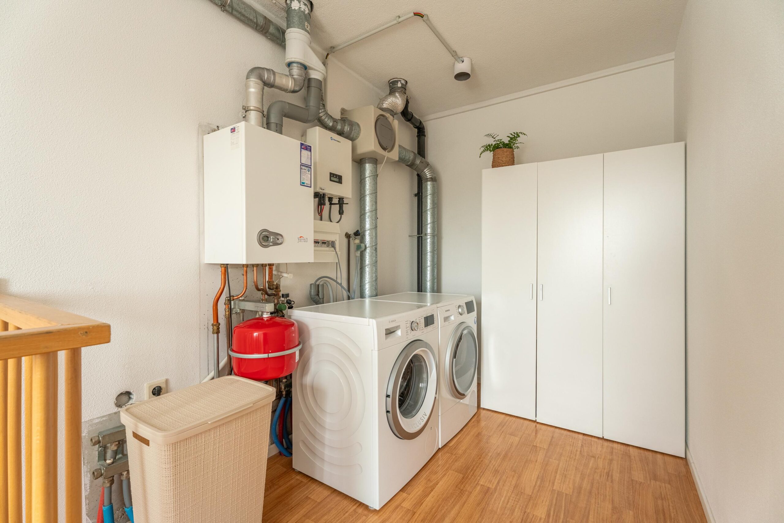 Overloop met aansluiting voor de wasmachine en droger en toegang tot de vierde slaapkamer. Ook deze kamer is ruim opgezet.